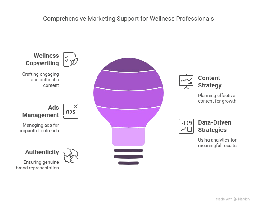 Whether you need a personal development copywriter to revamp your messaging or a wellness copywriter to build content that connects, I'm here to support your mission and offer marketing support for therapists and other wellness professionals.